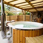 The holiday home comes with a bathroom with a hot tub and a washing machine.